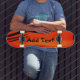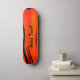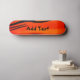 Dieses Skateboard hat ein orangefarbenes Design und Sie können Ihren eigenen Text hinzufügen.