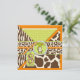 Safaridrucke, Giraffe, Zebra und Gepard und ein Tupfenmuster, wenn der Affe an einer Rebe und an den Umbauten des Blickes 3D hängt, Bögen, trimmt achte Geburtstagseinladungskarte.