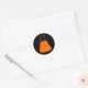 Schwarzer Aufkleber mit orangefarbenem Erlenmeyer-Kolben.
