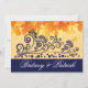 Orange & Navy Blue Fall quitte les invitations de mariage—Correspondance entre les cartes RSVP et la suite complète trouvée ci-dessous sur cette page. Chaque invitation présente un design élégant en feuilles de chaque côté dans différentes teintes vives d'orange, comme l'orange brûlé, ainsi que des teintes et des accents jaunes ou le rouge au-dessus d'une pêche comme un arrière - plan coloré. L'avant de chaque invitation présente également un bleu foncé ou un parfum marine pour ajouter de l'éclat. Ces invitations à des mariages thématiques sont programmées pour un stock de carte de base de haute qualité ; cependant, vous pouvez changer le stock en lin, feutre (gaufré), recyclé et plusieurs teintes métalliques si vous voulez sous le numéro 2 (choisissez votre style, votre taille et votre type de papier) sous le bouton orange ajouter au chariot. Une liste des coûts supplémentaires pour un stock de carte de crédit s'affiche également sous cette option. Chaque invitation est accompagnée d'une enveloppe blanche.