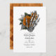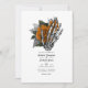 Whimsical Vintage florgotische Skelett Hand Hochzeitseinladung in Akzenten von Orange und Schwarz, die auf Ihre Veranstaltung spezifischen anpassen können. Ideal für jede Art von Thema oder Gartenhochzeit. Der QR-Code auf der Rückseite führt zu Ihrer Hochzeitsstelle, wo die Menschen mehr und uAwg lernen können.