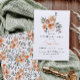 Invitation à la retraite orangée florale dans un style minimaliste avec un bouquet de fleurs orange et pêche et motif de retour. Vous pouvez personnaliser cette invitation avec vos propres détails dans la section "Personnaliser ce modèle".