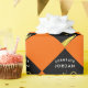 Creative Abschluss Geschenkverpackung und GradParty Dekoration mit schwarz-goldfarbenen Graduiertenkappen Design Muster auf orangefarbenem Hintergrund. Text bearbeiten, um den Namen des Absolventen hinzuzufügen.