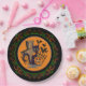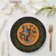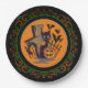 Orange Green Black Cat Grabstein Fledermäuse Hallo Pappteller