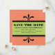 Elegante und raffinierte Extravagante Art Déco Ankündigung Datum freihalten in Nektarine Orange und zartes Grün mit einem kunstvoll geblüht und gepunkteten Rahmen und einem zweifarbigen Farbschema. Dieses moderne Design eignet sich hervorragend für die Ankündigung einer Hochzeit mit Deko-Thema. Einfach zu anpassen, fügen Sie einfach Ihre Hochzeitsdetails in den Textfeldern zur Verfügung gestellt. Klicken Sie auf "Anpassen", um weitere Personalisierungsoptionen zu finden.