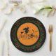 Orange Green Happy Halloween Hexe und Fledermäuse Pappteller