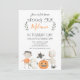 Orange Grey Halloween Anniversaire Invitation Cute aquarelle moderne Halloween invitation avec six personnages mignons en orange, blanc et gris. Ce design sucré est sûr de préparer le décor d'une fête d'anniversaire à thème Halloween pour enfant et est de style moderne.