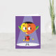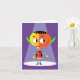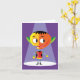 Ein seltsam aussehender Orangenkopf-Charakter im Rampenlicht. Dieses Design sieht auf dieser Grußkarte wirklich effektiv aus