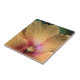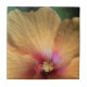 Das Originalfoto von MaeFlowers auf dieser kleinen Keramik Tile ist eine Nahe einer orangefarbenen Hibiskus-Blume. Die Blütenblätter der Blume sind gelb orange und werden in der Mitte der Blume in Rosa und Rot verwandelt. Wir können die Details des Pollensystems der Natur sehen, weiche rote Punkte und winzige gelbe Florets. Die Adern in den Blütenblättern verbreiten sich nach außen hin. Ein wenig grüne Sets an den Krüffeln.