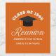 Ein hochwertiges Wiedersehen-Party-Weinlabel in Orange und Weiß für eine High School, Uni oder Universität. Anpassen mit Ihrem Schulnamen und schließ-Klasse unter der eleganten Kalligrafie für große personalisierte Alumni-Feier-Labels.