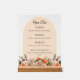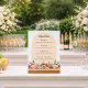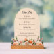 For an elegant and romantic wedding. A clear, transparent background decorated with orange, peach and pink florals. Arch shaped frame. Personalize and add your bar menu.