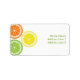 Frische und lustige Etikette in weiß, gelb, grün und orange.