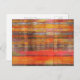 Orange Modern Abstrakt Art Postcard. Ein modernes abstraktes Abstraktionskunstgemälde mit bunten Details, mehrfarbig gelb/orange/rosa/rot gestrichene Striplinien aus einer Postkarte des modernen Künstlers. Schicken Sie diese farbenfrohe, moderne Kunskarte an Ihren kunstliebenden Freund!