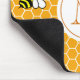 Dieses Mauspad weist ein orangefarbenes geometrisches Wabenmuster mit Bienen auf. Personalisieren Sie es mit Ihrem Monogramm.
