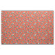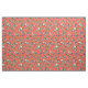 Dieser Stoff hat illustrierte Dinosaurier-Schädel in Marineblau und Creme auf einem hellrot-orangen Hintergrund.