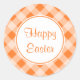 Ein helles orangefarbenes Gingham-Muster schmückt diese niedlichen Happy Oaster Aufkleber. Verwenden Sie diese Aufkleber für eine Bäckerei, Geschäft, Küche, Essensbehälter, Geschenktaschen, Boxen, Kirche, Handwerk, etc....Das Design stammt aus der Originalkunst.