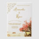 Orange Oleander Blume Beach Glitzer Hochzeitsvellum Einladung. Schöner Orangenoleander am Strand und Imitate goldenen Glitzer Punkte. Eine wunderschöne Blumenhochzeit, besonders für eine Hochzeit am Strand am Meer.