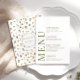 Genießen Sie Ihre zeitlose Hochzeitsfeier mit einer eleganten Menükarte. Dieses raffinierte Design wird durch eine personalisierte Touch ergänzt, die eine Mischung aus orangefarbenen Blume und grünen Blätter darstellt - das Monogramm aus Braut und Bräutigam auf der Rückseite, das ein unvergessliches und unverwechselbares Element für Ihren besonderen Tag schafft.