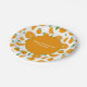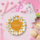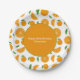 Teller mit einem Schnitt, halber und vollorangefarbenem Muster. Ein benutzerdefinierbarer Text ist in der Mitte auf orangefarbenem Hintergrund verfügbar. Eine frische Dekoration für eine Geburtstagsfeier, eine Hochzeit, ein Party, eine Pension, einen Junggeselinnen-Abschied, etc.