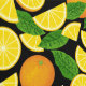 Orangefarbene Scheiben und Blätter. Nahtloses Muster. Benutzerdefinierte Hintergrundfarbe.