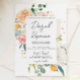 Schöne gerahmte Blumeneinladung mit orangefarbenen, pfirsichfarbenen, rosa Blumen und goldenen Akzenten
