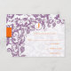 Orange Plum Damask Monogram Wedding RSVP Einladung