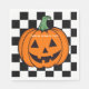 Eine Papierserviette mit einem orangefarbenen Kürbisgesicht. Matching Teller und Becher verfügbar. Entweder entfernen Sie den Text oder bearbeiten Sie ihn mit dem Designwerkzeug selbst.