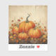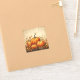 Konfektionieren Sie den Aufkleber mit einer rustikalen Abbildung mit orangefarbenen Kürbissen und Herbstlauben. Eine Herbstgrunge-Atmosphäre.