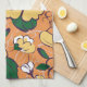 Orange Retro Botanical Yellow Flowers Custom Name Geschirrtuch