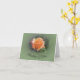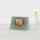 Eine orangefarbene Rosenbude, umgeben von einer grauen und grünen, leicht ovalen Vignettenschattierung. Der Text lautet "Denken Sie an Sie". Dieser Text ist anpassbar, wenn der Kunde ihn ändern muss. Das Interieur der Karte ist leer, sodass der Kunde seine eigene handgeschriebene persönliche Nachricht hinzufügen kann.