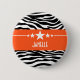 Der moderne Sassy Star Zebra Button mit seinem schicken schwarz-weiß zebrafarbenen Zebrahintergrund und dem fett orangefarbenen Rahmen mit einem lustigen Sternmotiv. Dieses mädchenhafte Design kann mit dem personalisierten Text Ihrer Wahl angepasst werden. Klicken Sie auf "Anpassen", um weitere Personalisierungsoptionen zu erhalten.
