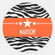 Die trendigen und modernen Sassy Star Zebra Sticker mit einem schicken schwarz-weißen Zebra-Hintergrund und einer fett orangefarbenen Grenze mit einem lustigen Sternmotiv. Dieses mädchenhafte Design kann mit dem personalisierten Text Ihrer Wahl angepasst werden. Klicken Sie auf "Anpassen", um weitere Personalisierungsoptionen zu erhalten.