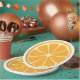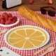 Teil des Vintagen Küchenmusters, dieses Papierplatten-Ausrüstungsbeschreibungen eine orange Scheibe. Neuer und moderner Blick ist für Sommerpicknicks oder Hinterhof bbqs groß!