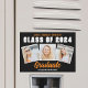 Diese trendige Schwarz-Orange-Magnetkarte für Senior-Senior-Portrait-Foto-Collage für Graduate-Ankündigung verfügt über weiße Varianzbuchstaben für die Klasse von 2024 unter Ihrem Uni- oder High-School-Namen. Passen Sie diese Magnete mit Ihren bevorzugten 3 Abschluss Fotos an.