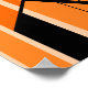 Kürzen Sie auf Standardrahmen oder Ihre eigene Vorliebe (in kleinen bis großen Größen von verschiedenen Proportionen und verschiedenen Papiertypen erhältlich). Das Design ist gewagt, geometrisch und abstrakt, in beige und schwarz Formen und Linien auf einem hellorangen Hintergrund. Ein lebendiges, minimalistisches, zeitgenössisches Design mit Retro-Elementen für Zuhause und Arbeitsbereich.