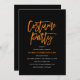 Cette invitation moderne au costume d'halloween comporte les mots "costume party" dans un script manuscrit orange. Les détails de la fête sont affichés ci-dessous.