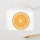 Eine einfache, aber niedliche Gestaltung eines orangefarbenen Obstschnitts, das auf einer Postkarte in Weiß und Orange gefertigt wurde.