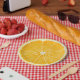 Fügen Sie Ihrem Event etwas Helligkeit hinzu, mit diesen festlichen Tellern mit einem orangefarbenen Schnitt. Ideal für Sommerveranstaltungen.
