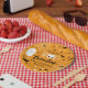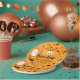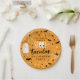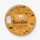 Halloween party paper plates in orange with a spooktacular design featuring a cute little ghost, bats, stars, and spiders sitting on spider webs. The double o's in spooktacular has been designed to look like big googly eyes. Personalize with your family name.