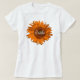 Lass der Welt wissen, wer die Braut ist, wenn man den niedlichen Orangen Sonnenblumen-T - Shirt Hochzeit trägt. Ändern Sie den Text, um ein anderes t Shirt für Ihr gesamtes Brautparty zu erstellen. Erstellen Sie auf Wunsch eine individuelle botanische Bräute, Trauzeugin oder Blume Mädchen Tee. Dieses hübsche, maßgeschneiderte Hochzeitsfotos mit Blumen und einer orangefarbenen Sonnenblumenblüte auf goldgelbem Hintergrund zeichnet sich durch ein digital erweitertes Blumenfoto aus.