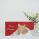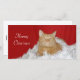 Orange Tabbykatze in der weißes Weihnachtsgirlande auf einer roten Hintergrund-Fotokarte