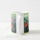 Eine klassische Tasse mit den schönen roten orange Taglilien, vining Blumen der Fuchsie und Mohnhülsen basiert auf einer Ölmalerei von Joan C. Thomson eines Gartens im Shenandoah Valley von Virginia