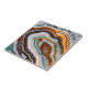 Dies ist eine hochwertige, farbenfrohe, weiße, schwarze, blaue, aquamarine, graue, orangefarbene, braune und terracotta-Scheibe agate geode nah-up.