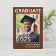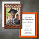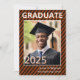 Schulfarben in Orange diagonale Streifen und Foto Abschluss Einladung. Fügen Sie das Foto und das Party Ihres Absolventen oder die Anlaufinformationen hinzu. Diese Einladung lautet: Front (alle editierbar) Graduate 2025 Name School Back (alle editierbar) Join Us to Celebrate The Abschluss of... Name Event-Info