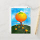 Umweltfreundliches Konzept zur Darstellung eines Orangenbaums, der eine riesige Orange mit vielen kleinen Orangen um den Boden herum wachsen lässt. Bilder auf verschiedenen Geschenken und Produkten erhältlich.