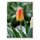 Ein vorbeiziehender Sturm legt einen schneebedeckten Schluck auf die gefalteten Blätter einer schönen orangefarbenen Tulpe. Beachten Sie, dass diese Karte mit Ihrer persönlichen Inschrift angepasst werden kann.