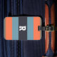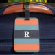 Moderne orange und blau gestreifte Gepäckmarke. Personalisieren Sie das Tag mit Ihrem Namen oder Initial. Der Stil und die Farbe des Schriftartes können auf Ihren persönlichen Stil abgestimmt werden.