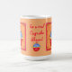 Sagen Sie jemandem, dass es sich um einen Kuchen oder eine andere personalisierte Nachricht mit dieser Tasse. Die rote und blaue Kuchen mit roter Blume auf orangefarbenem Hintergrund und weißlicher, roter Kante. Die Kunst ist auf einem orangen Hintergrund. Feiern Sie einen Geburtstag oder einen anderen Anlass mit der originalen Kuchen- und Kuchenkunst, die sowohl für Jungen als auch für Mädchen und Erwachsene perfekt ist. Die Farben sind sanfter und lebendiger. Vollständig anpassbar, um personalisiert zu werden.
