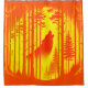 Dieser Duschvorhang hat einen orangefarbenen und gelben Wolf, der an ihm heult.