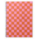 Abstrakte digitale Kunst von orangen und rosa Quadraten in einer karierten Formation.